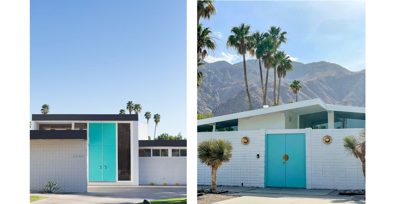 Aux XXᵉ et XXIᵉ siècles, le turquoise se dote de nouvelles identités esthétiques. À Palm Springs, dans les années 1950 et 1960, en plein essor du modernisme californien, la couleur s’impose dans les intérieurs et les objets. Des designers comme Charles Eames ou Verner Panton l’intègrent à leurs meubles et luminaires.
