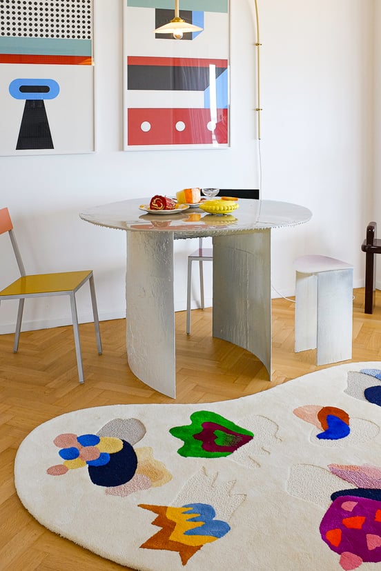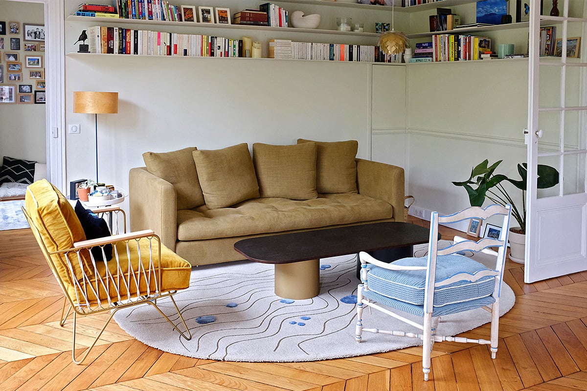 Grâce à mon métier, je connaissais des fabricants. J’ai donc dessiné deux tapis, très instinctivement, et je les ai faits fabriquer pour notre intérieur. En parallèle, il y a eu un plan de départ volontaire aux Galeries Lafayette, et des retours très positifs sur mes tapis. Tout s’est entremêlé.