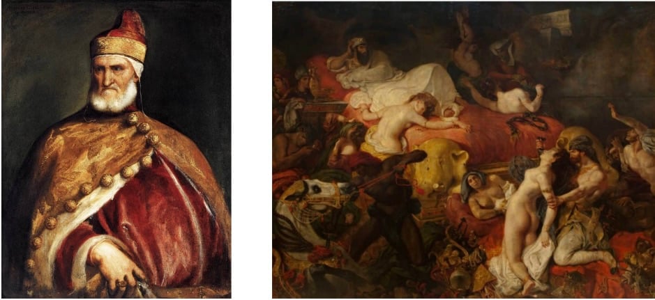 1- Titien, Doge Andrea Gritti, vers 1456-1550 2. Eugène Delacroix, La Mort de Sardanapale, 1827